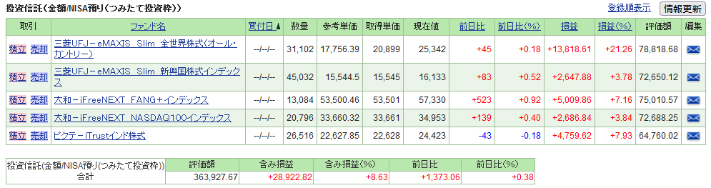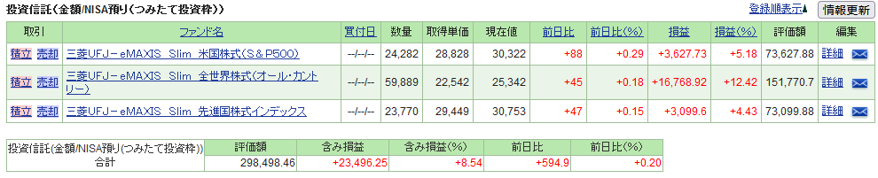 | 三菱UFJ-eMAXIS Slim 先進国株式インデックス | 70,000 | 3,099.60 | 4.43 | 73,099.88 |