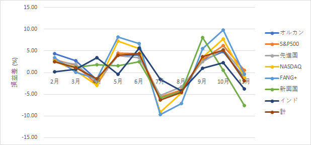 オルカンが良いか、S&P500が良いかって話があるけど、少なくとも今年はオルカンが強いみたい。それもきっと時期によって変わるんだろうけど。
