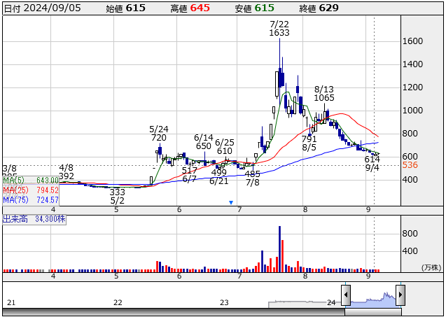 ここまで下がってもなお、僕はリベルタ株をキープしようと思っています。すでに日足チャートで見ると完全にダメダメ状態ですけど、そもそも僕が目指す株式投資ってもっと長期、月足とかで見るもんだし。もちろん最初にミスらず買って、パパっと売り抜けられたら最高でしたけど。