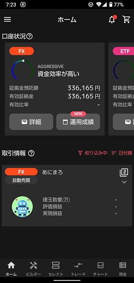 以上で「あにまろ」が稼働しました。まだ動かし始めたばかりだから、数百円の損益がある程度だけど、これからガンガンやってくれることを期待。