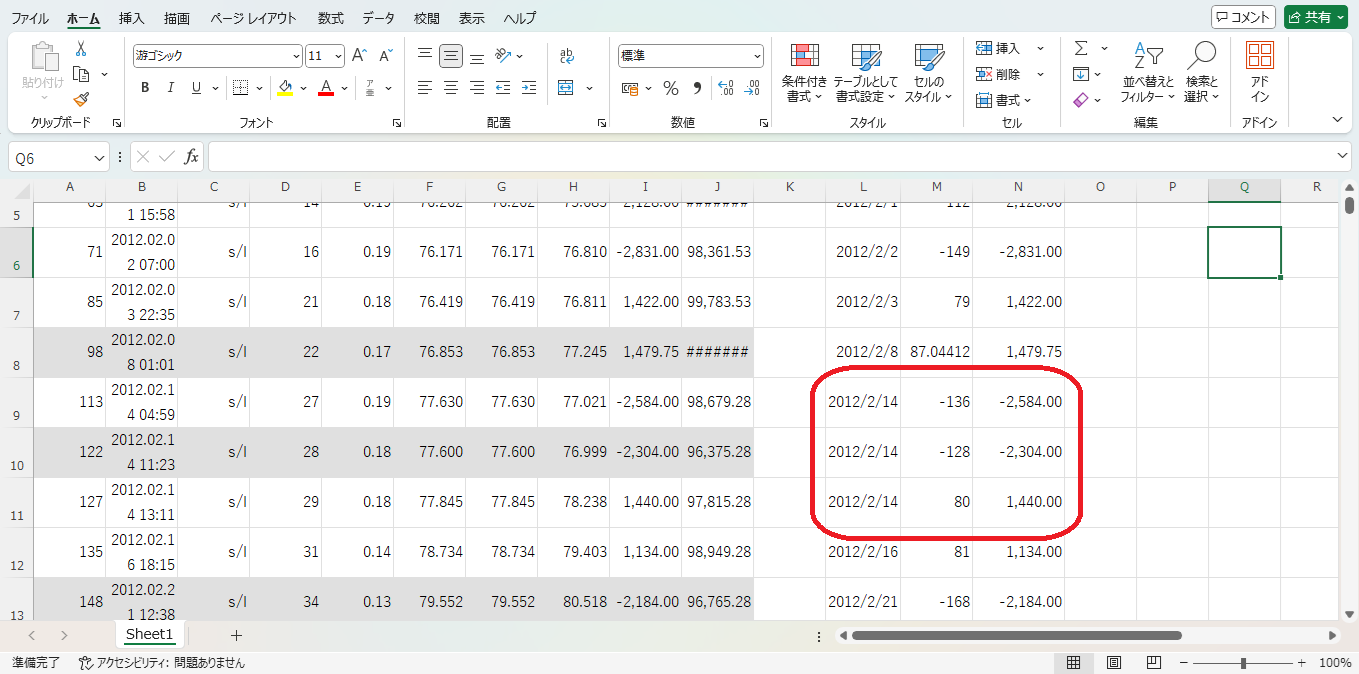 念のため「2012/2/14」の「単位損益」を画像14で確認すると、-136-128+80=-184です。画像19でも「2012/2/14」の「単位損益」は-184になっており、1日の損益が合算されていることが分かります。