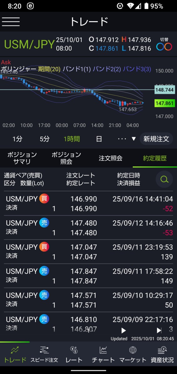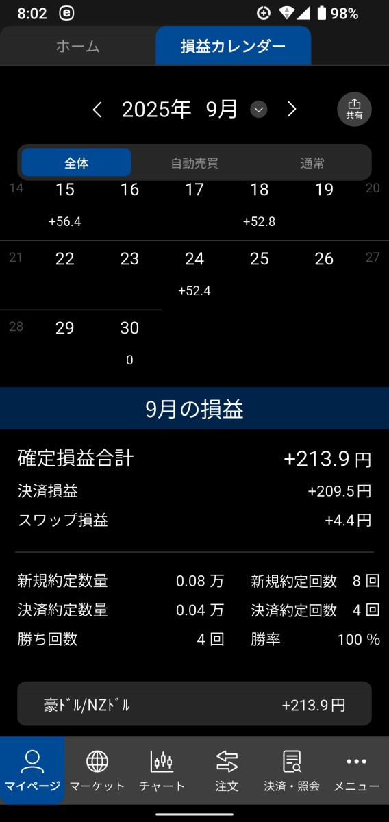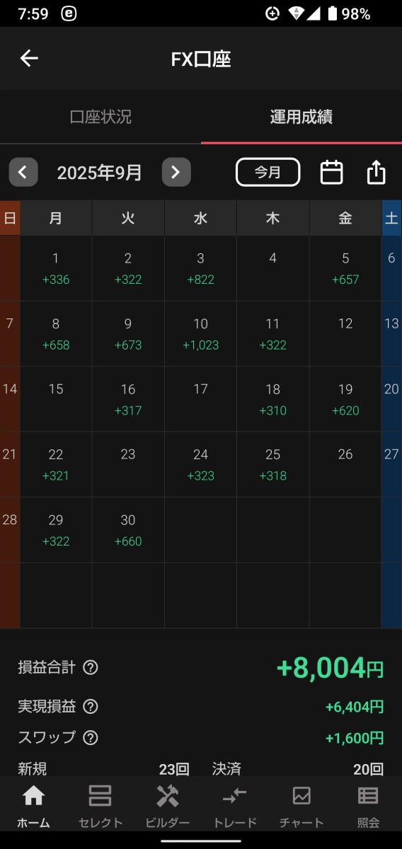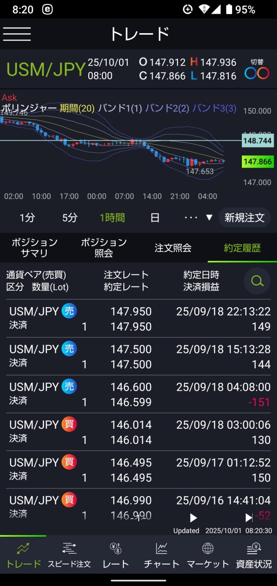 2025年10月1日(水)早朝のFX自動売買(トライオートFX)収支報告は以下の通り。元本は30万円で、シェア「利を見てせざるは勇無きなりAUD/CAD」建玉数量1万でやってます。