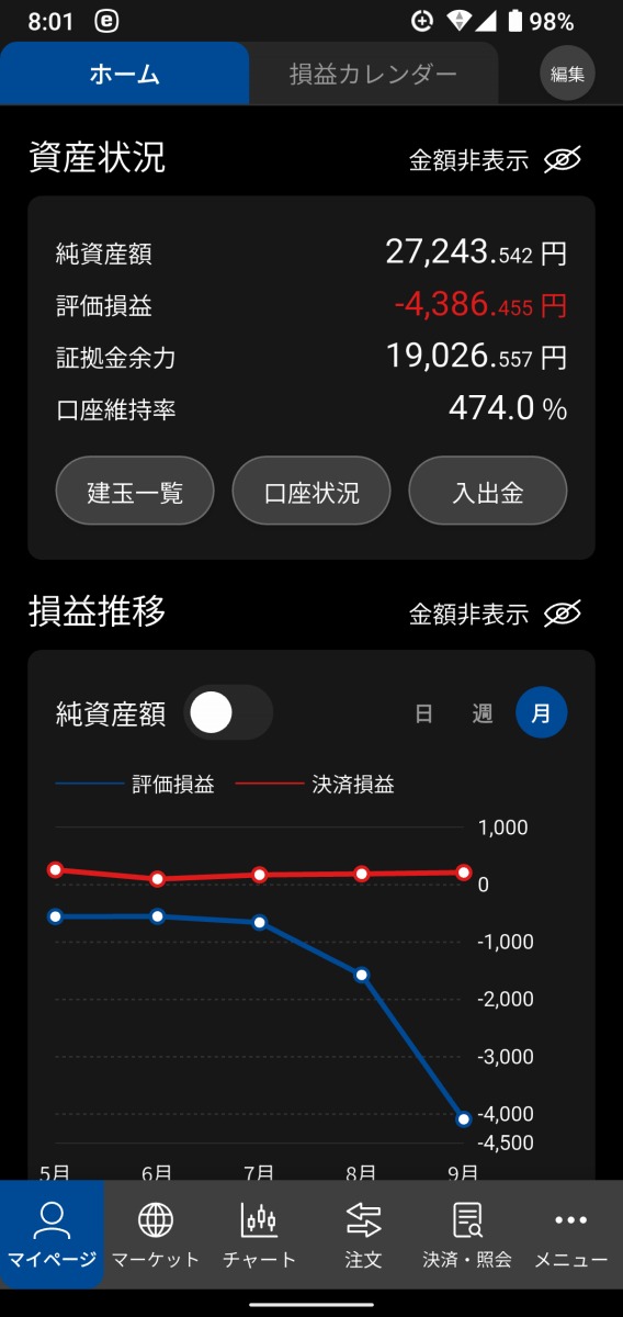 含み損益/証拠金預託額(%) | – | – | -2.29 | -0.66 | -2.31 |
