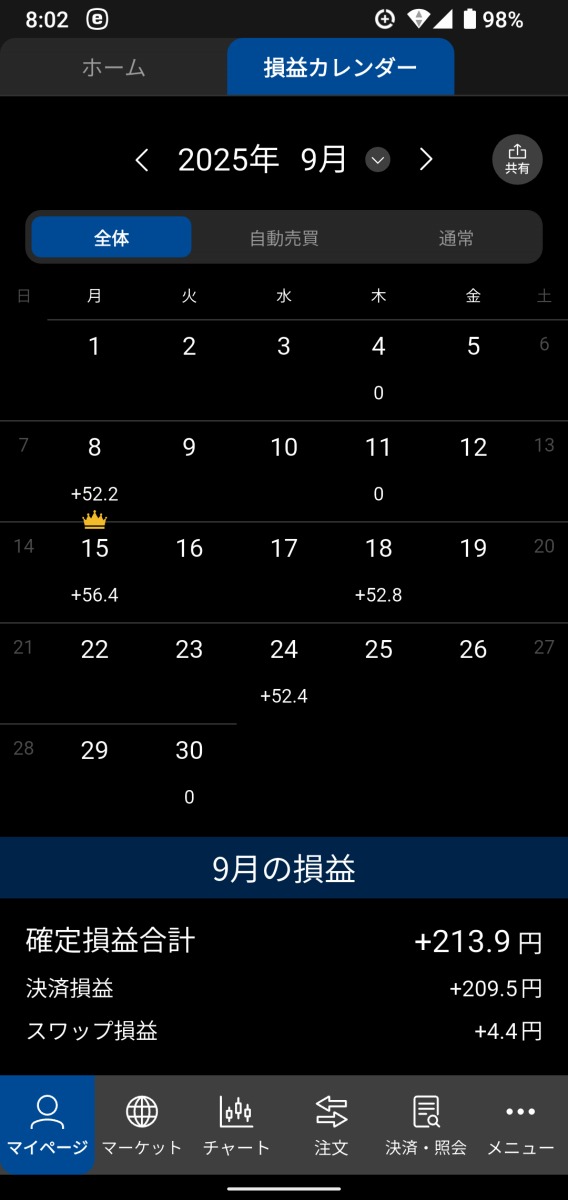 9月は+1%弱。途中まで調子良かったんだけど、後半再び失速。それにしても1%ではサーバー代を賄えないのですよ。ここはやっぱり経費を抑える検討を進めて、少しでも取引の足を引っ張らないようにしたい。