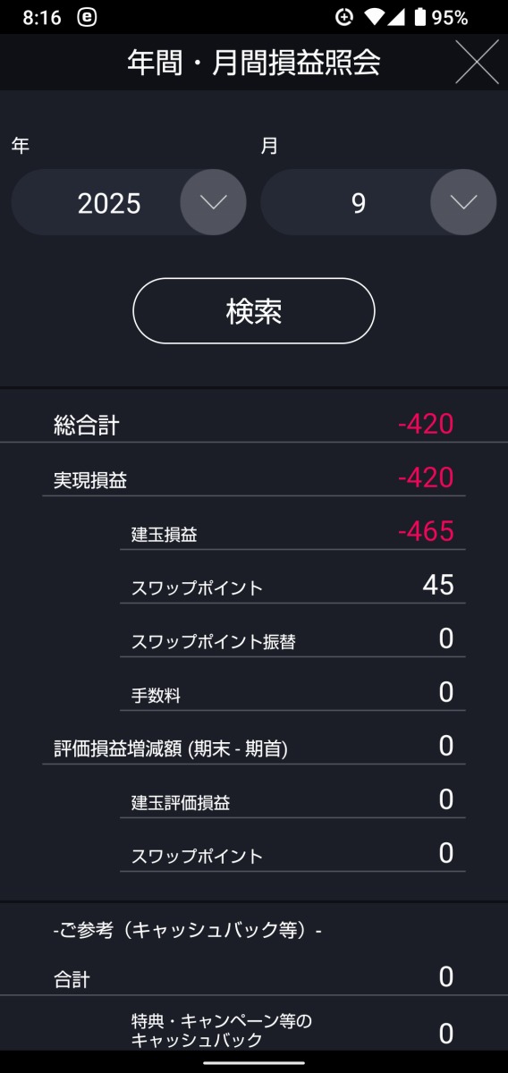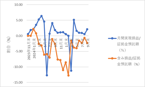 月間実現損益/証拠金預託額(%) | – | 1.87 | 0.92 | 0.52 | 2.09 |
