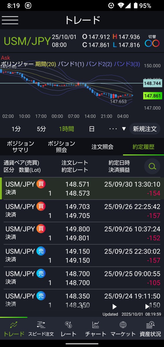 MATSUI FXの現状については最近調べた。想定通りの売買を繰り返しており、何ら問題ないことを確認。