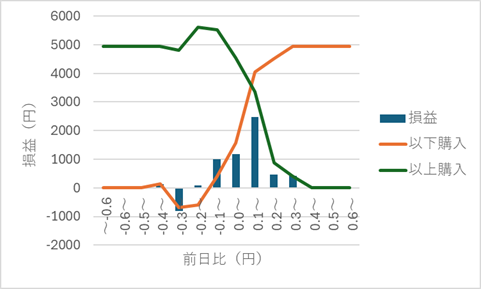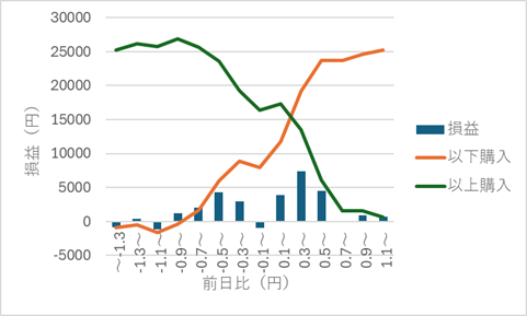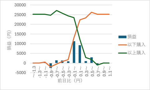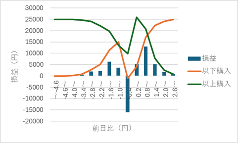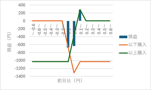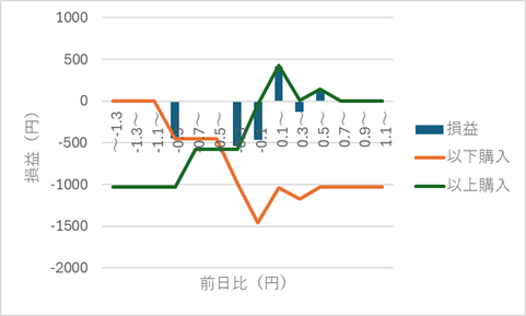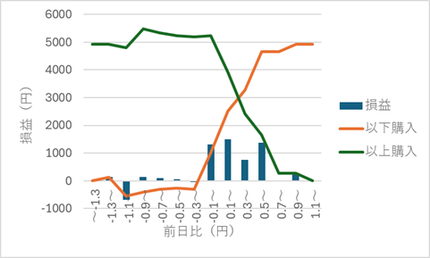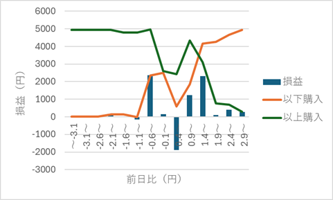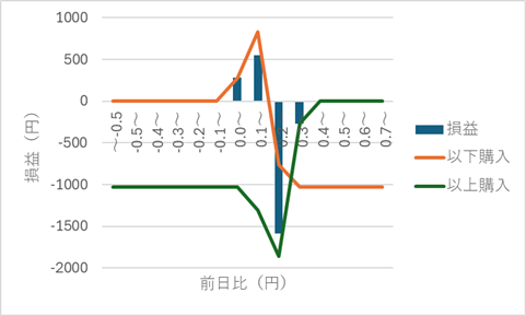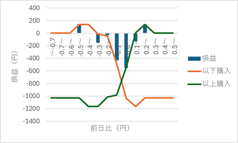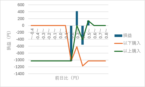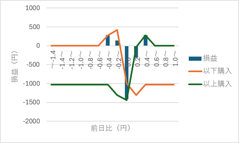 などと思って調べてみたらなるほど納得。平均日数2日の時には前日比プラスで大きく負け、3日と18日ではマイナスで大きく負けている。……けどこれだって前日比がプラスになるかマイナスになるか読めなければ意味がない。
