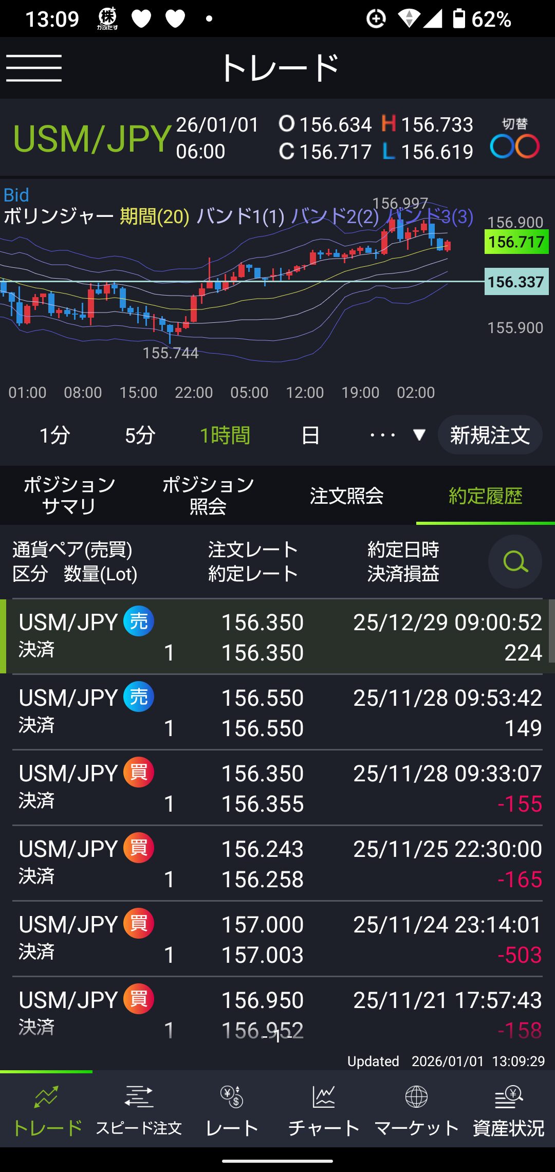 2025年7月から資金5万円でDMM FXに口座を開設。ダメージも大きくなり、EA自作のアイディアも十分、ということでお休み期間中。取引はたったの1回だけです。