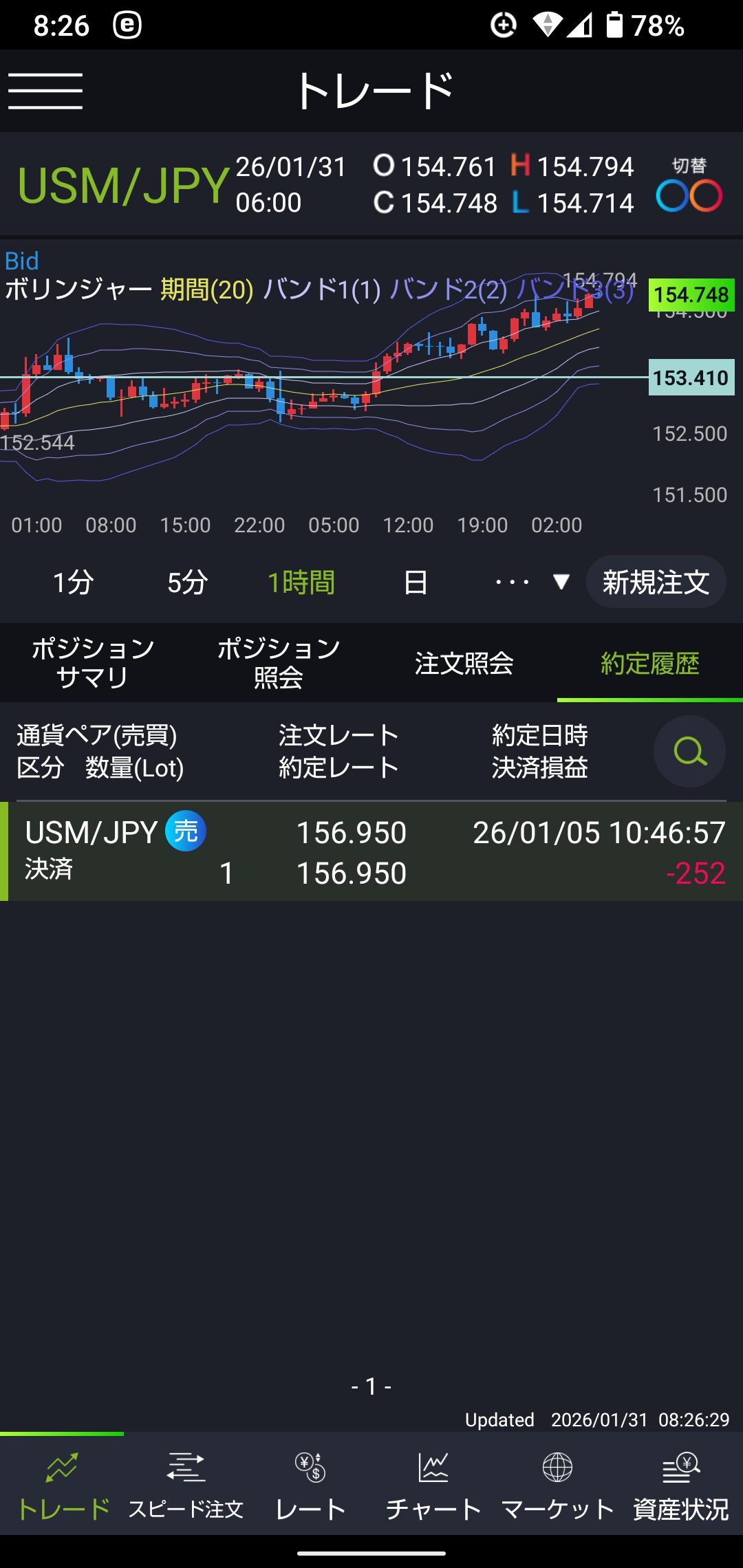 ブログと電子書籍に興味が移ったので最近はそっちに注力中です。ということで1月は1回だけ取引してしっかり負けました。