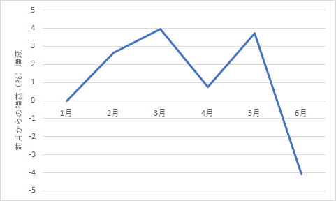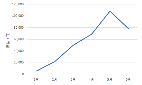 6月までの損益をグラフ化すると以下のようになります。