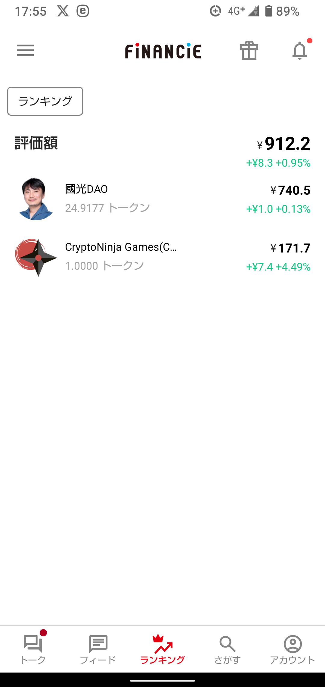 | 3 | 暗号通貨FNCT | 1,083 | 425 | -60.74 |