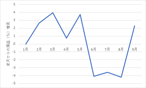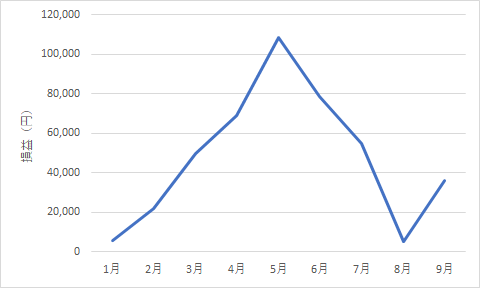 9月までの損益をグラフ化すると以下のようになります。