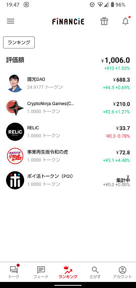 | 3 | 暗号通貨FNCT | 1,083 | 879 | -18.80 |