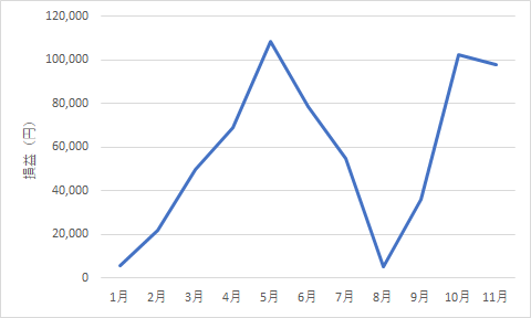 11月までの損益をグラフ化すると以下のようになります。