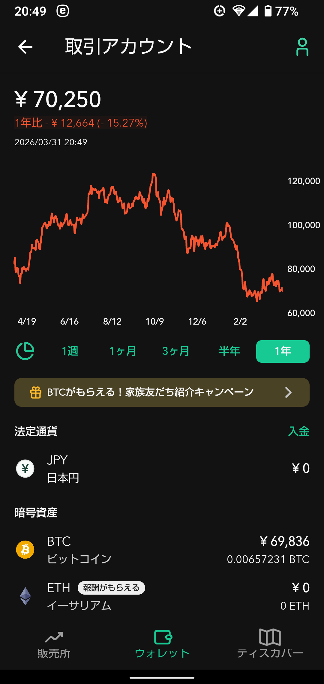 | 1 | 暗号通貨BTC | 100,000 | 69,836 | -30.16 |