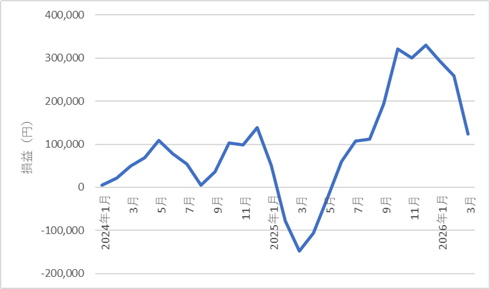 | 前月からの 損益(円)増減 | -152,432 | 3,400 | 18,092 | 1,153 | -5,945 | -135,732 |